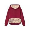 This women's hooded sweatshirt features a plush fleece lining that delivers excellent warmth and comfort. Made from polyester with added spandex for stretch, it measures approximately in length with long sleeves and a kangaroo pocket. Ideal for casual winter outings, it supports easy care with spot cleaning.