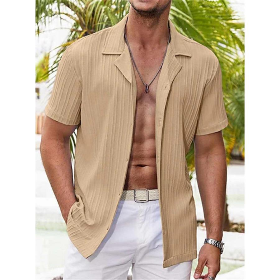 Summer Top Casual Men's Shirts Solid Color Striped Short Sleeve Lapel Shirt Beach Casual Oversized Blouse