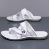 Men Black Leather Slippers Simple Flats Summer White Outdoor Brown Open Toe Wide Head Beach Shoes Plus Size