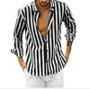 Men's Autumn Long Sleeve Striped Shirt Lapel Loose Tops Man Clothing