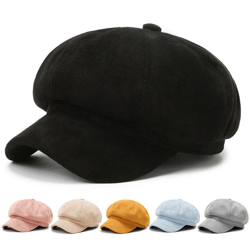 Octagonal Suede Beret: Versatile Korean-Style Autumn/Winter Fashion Hat for Women.