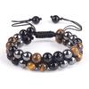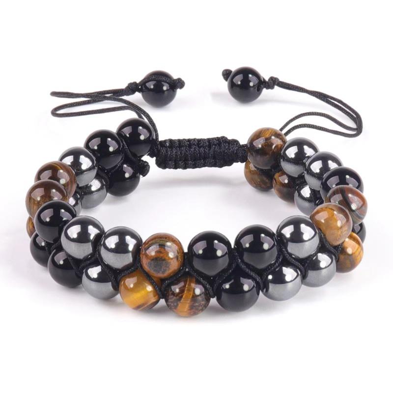 Double-layer Tiger-eye Obsidian Bracelet for Men, Knitted with Adjustable Black Magnets and Yoga Beads