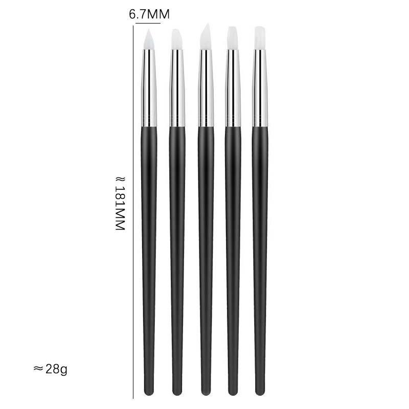 5-Piece Silicone Nail Art Brushes with Black Handles - For Carving, Embossing, Gradient, Blending, and Mirror Powder Application.