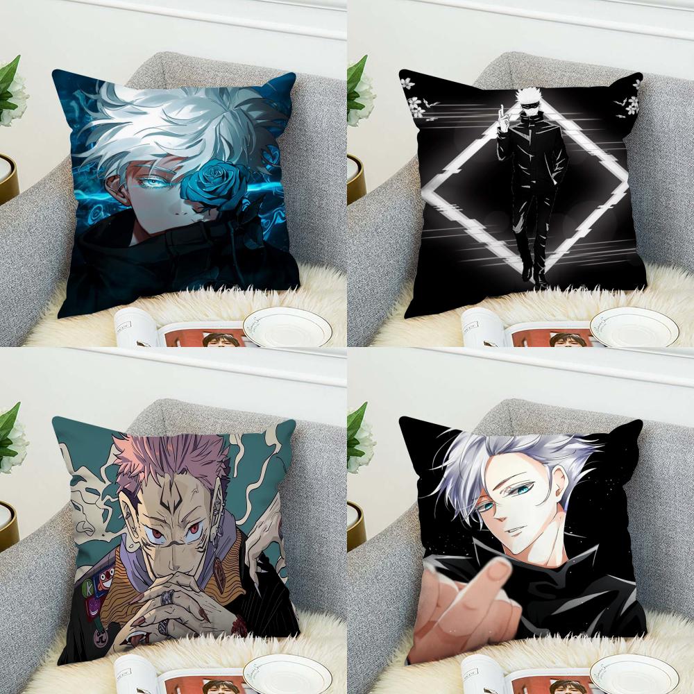 Anime Jujutsu Kaisen Pillow Case For Car Sofa Decorative Home Doublesided Print Plush Square Throw Pillow Cushion Cover