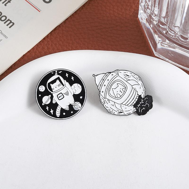 Cat Astronaut Enamel Pins Custom Cosmos Spaceship Brooches Lapel Badges Clothes Animal Jewelry Gift for Kids Friends