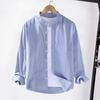 Men Spring Shirt Single-breasted Stand Collar Cardigan Shirt Long Sleeevs Loose Oversized Mid Length Men Fall Top