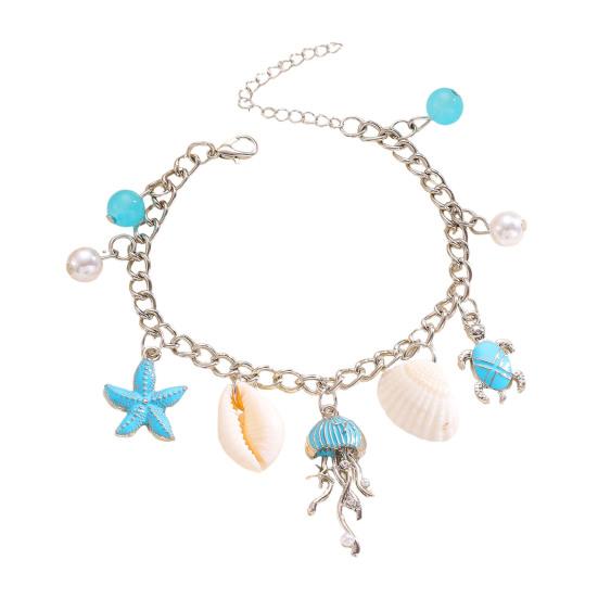 Rich Marine-Inspired Design Elements: Adorned with classic seaside motifs such as shells, starfish, jellyfish, and turtles, this anklet combines soothing blue and white hues with delicate faux pearl embellishments. The harmonious color palette and authentic marine details evoke a serene coastal atmosphere, making it a perfect accessory for lovers of oceanic aesthetics.