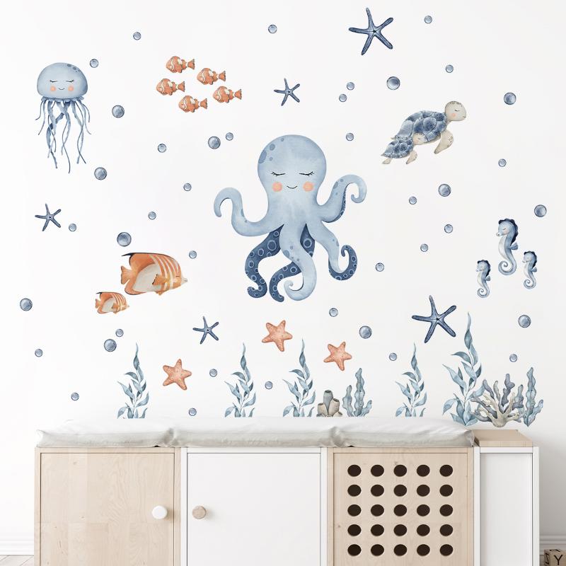 1Pc Cartoon Octopus Marine Animal Furniture Wall Sticker For Bedroom Living Room Decor Nursery Home Decoration Wall Decals
