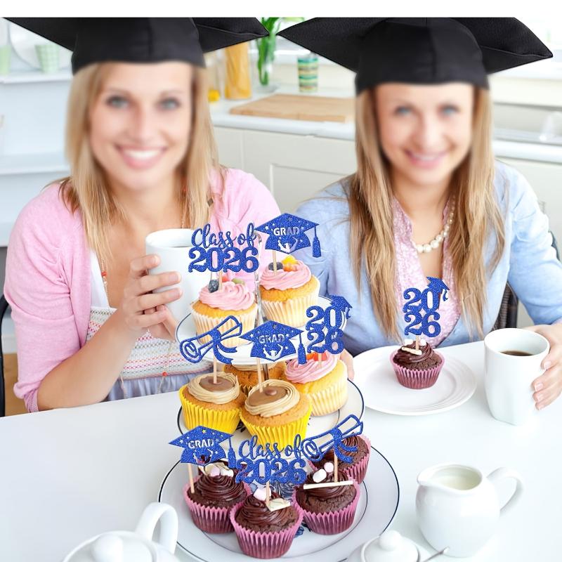 12Pc Class Of 2026 Graduate Cake Topper Mortarboard Congrats Graduation Cupcake Topper Party Baking Supplies Dessert Decoration