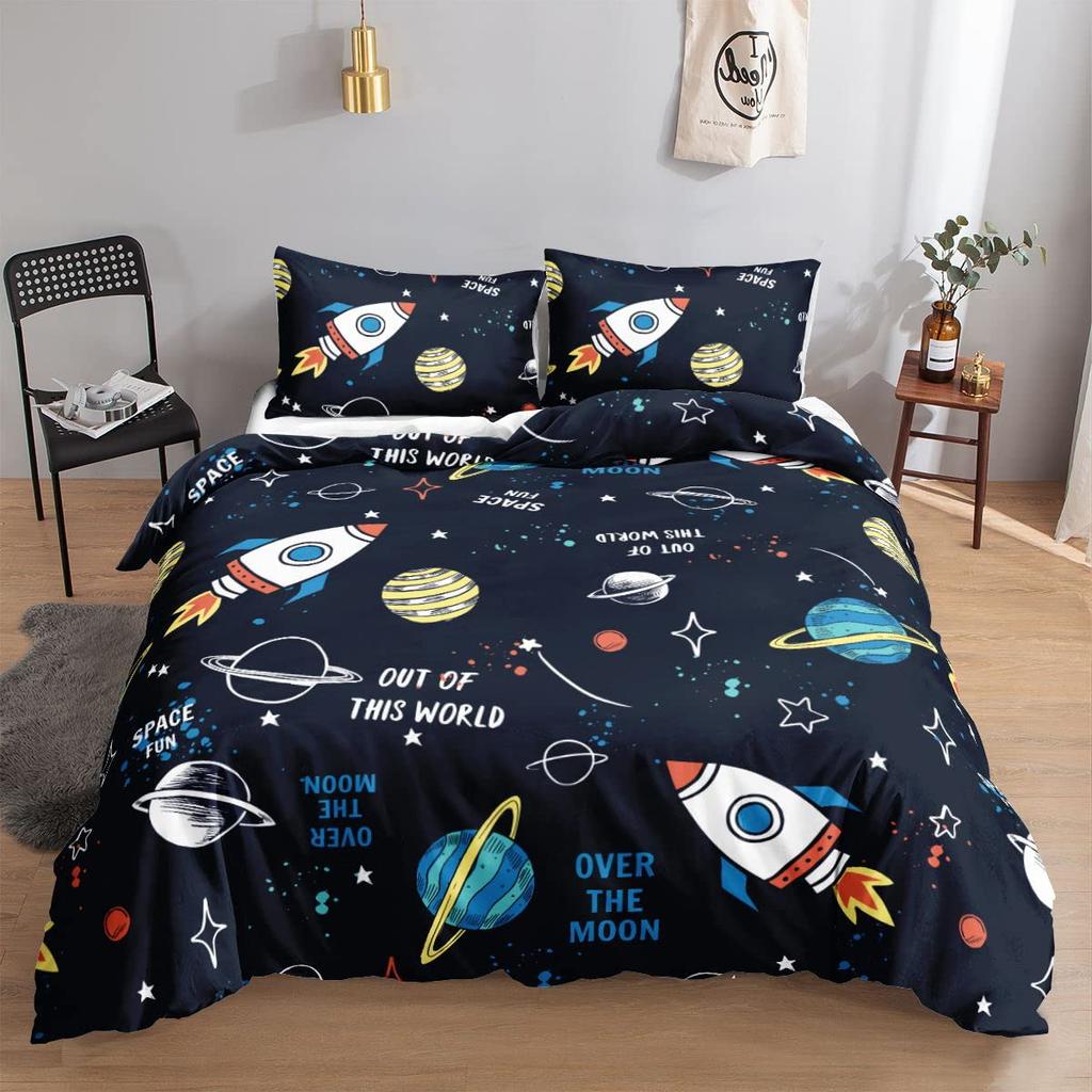 Astronaut Soft Duvet Cover Set Quen Sized Dimensions, Outer Space Beding Set 3pcs for Children Kids Young Girls Adult Peoples,Warm Comforter Cover
