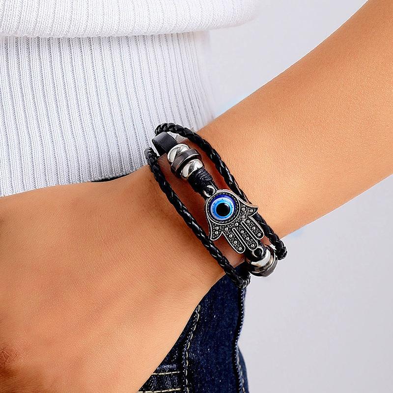Fashion Palm Devil'S Eye Genuine Leather Bracelets For Women Men Jewelry Accessories Gift