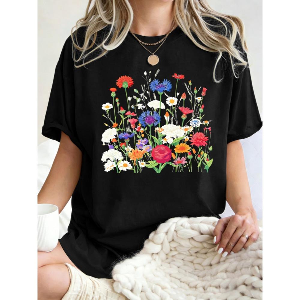 Flowers That Absorb Sunlight Printed T Shirt Women Summer Casual Short Sleeve O-Neck Loose T-Shirt Cotton Sportswear