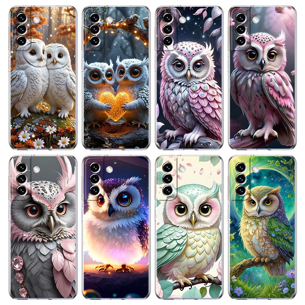 Transparent Phone Case Cover for Samsung Galaxy S25 S24 S23 S22 S20 S21 FE Ultra S24 S23 S10 S10E Plus 5G Cute Owl Pattern Capas