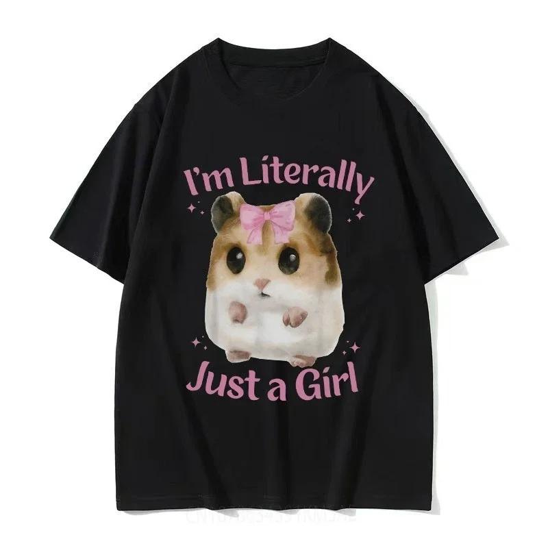 Im Literally Just A Girl Cute Sad Hamster Printed Funny Meme T Shirts Womens Casual Fashion Tshirt Cute Summer Clothing