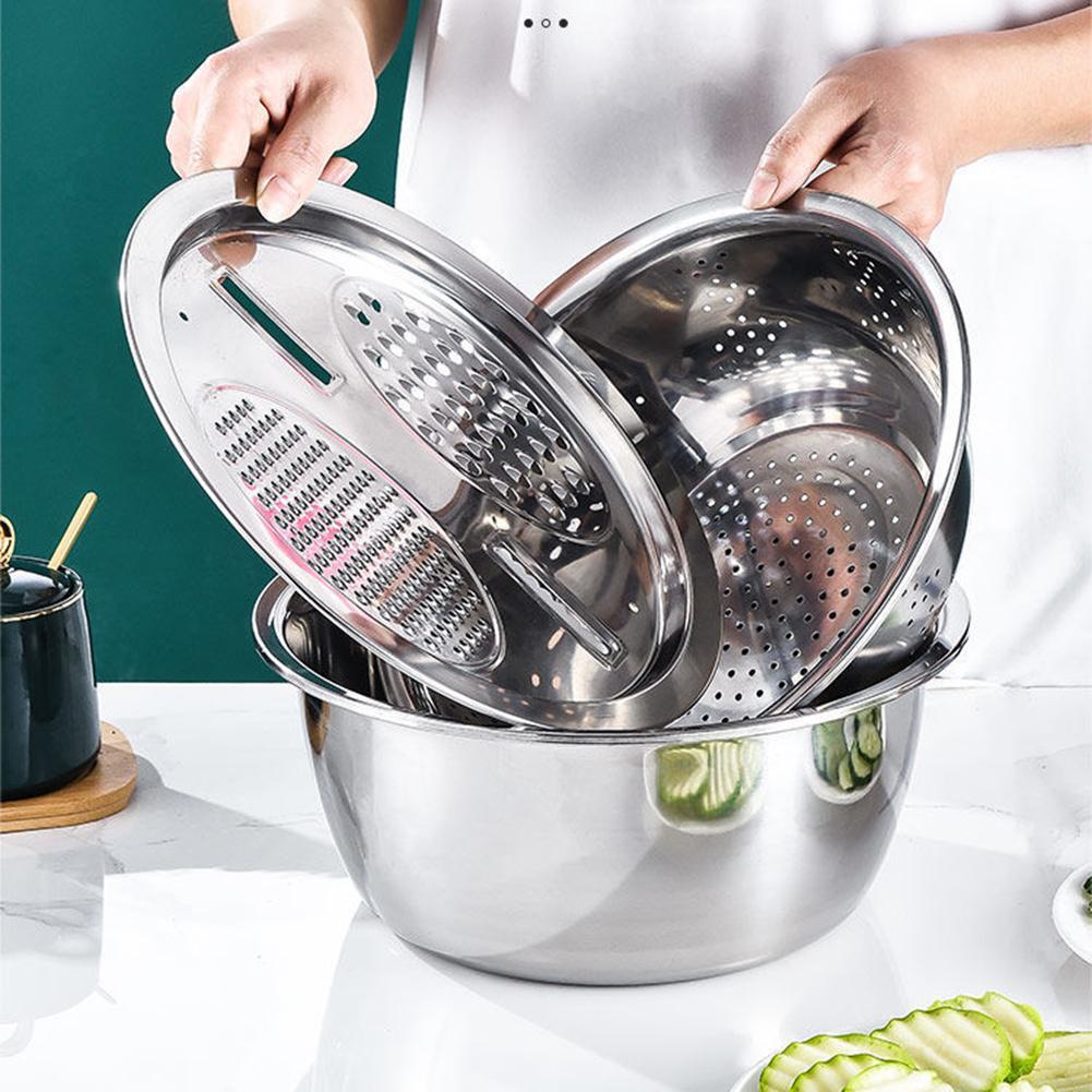 Stainless Steel Drain Basin With Slicing Tool Household Veggie Washing Strainer For Carrots Fruit