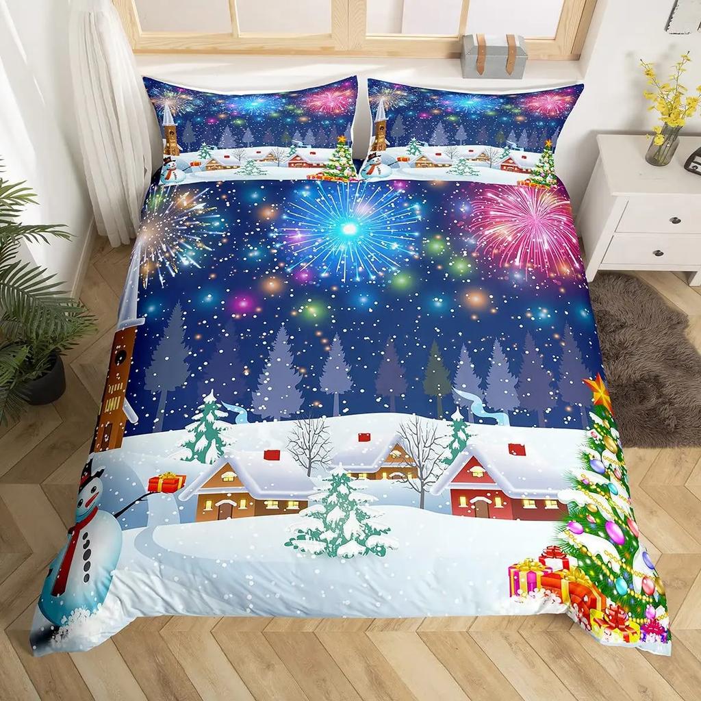 Fireworks Soft Durable Quality Duvet Cover Colourful Fires Celebrate Mery Christmas Theme Polyester for Children Tens Women for Bedrom Decoration