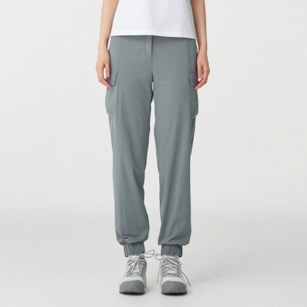 These sporty cargo jogger pants feature snap buttons and cargo pockets for practical storage space. They are crafted with a loose fit for active movement and a cool, stretchy fabric. The waistband features an elastic band on the back for a neat and comfortable fit. The thigh area has a relaxed fit for increased mobility, while the knee area is slightly loose to provide comfort. The front thigh left/right pockets feature a Sengrip button for safe storage of personal items.