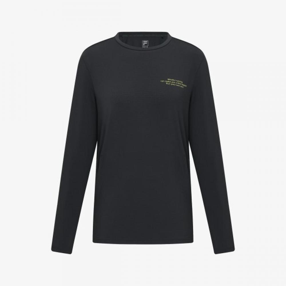 The FILA Running Mesh Long Sleeve Tee is a long-sleeve T-shirt made from mesh material suitable for running and training, providing a semi-overfit silhouette. It uses highly breathable mesh fabric to maintain comfort during exercise, and is designed with UV cut functionality included in the quick-dry material.