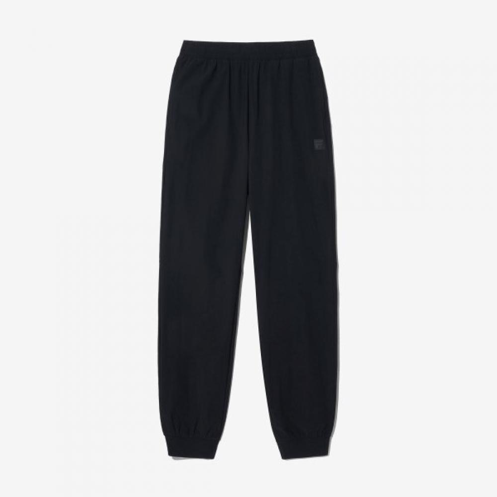 The Fila FILA Cooling Track Pants are made from a tricot material that combines the benefits of woven and knitted fabrics, offering excellent elasticity and breathability. It resists wrinkles and maintains shape stability, providing a cool sensation when touched. The color is BLK (black), with size options of W70, W75, W80, W85, W90, W95, W100, W105 available.