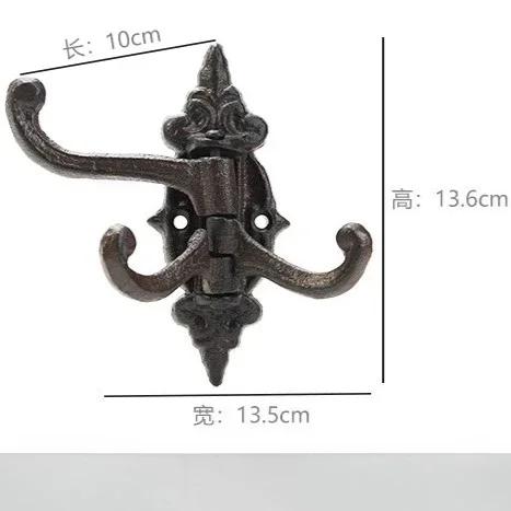 Rotatable Three Hooks Retro Nostalgia Metal Iron Art Wall-mounted Clothing and Hat Storage Hook Home Hanging Outdoor Decoration