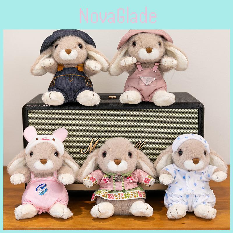 This plush rabbit doll features a charming cartoon-inspired design and measures 13cm. Made of high-quality polyester fiber and filled with soft PP cotton, it offers a gentle touch for children. The doll is dressed in denim, traditional attire, or sleepwear, suitable for bedtime or play. Easy to clean with a gentle wipe, it is ideal for children's bedrooms, nap times, or as a comforting companion.