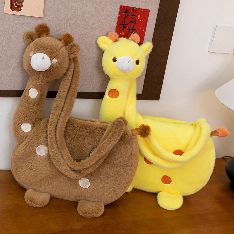 Cartoon Animal Giraffe Plush Crossbody Bag Girly Large Capacity Portable Cute Funny Giraffe Shape Shoulder Bag With Zipper Gifts
