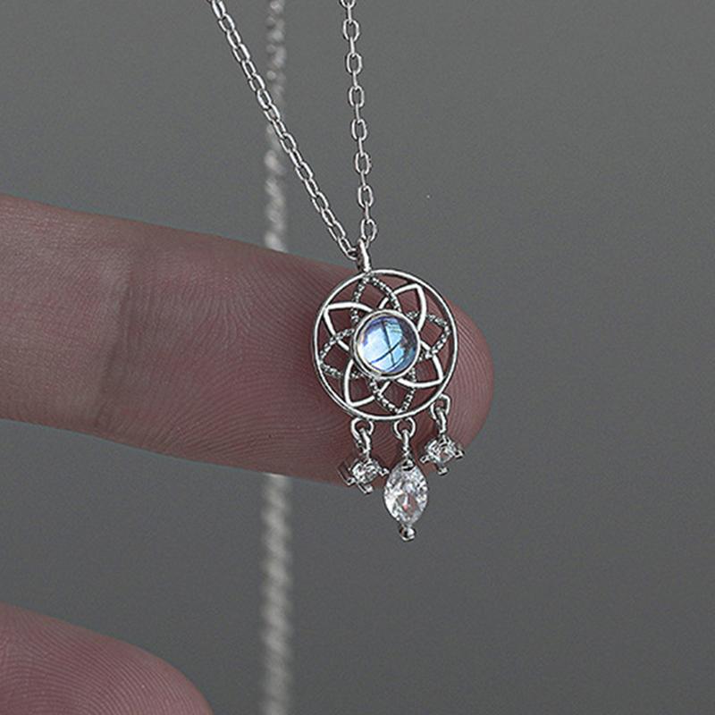 Crystal Tassel Moonstone Dream Catcher Charm Necklace For Women Creative Pendant Elegant Party Necklaces Jewelry Gift