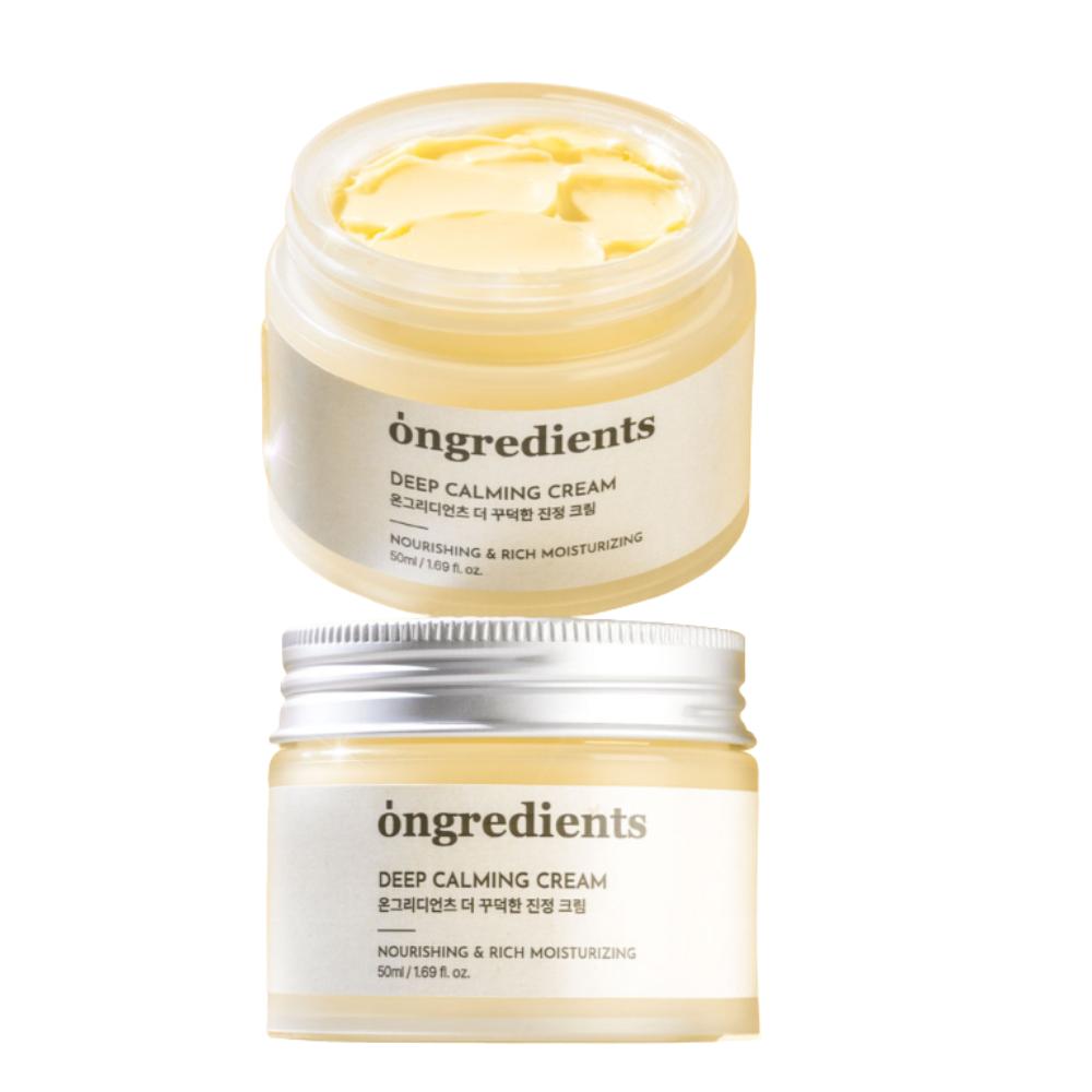 Ongredients Deep Calming Cream, Korean rich moisturizer, K-beauty thick face cream, intensive soothing cream for sensitive skin, barrier repair moisturizer, South Korean cosmetics, shea butter facial cream, ceramide calming treatment, dry skin relief, dense moisture cream.