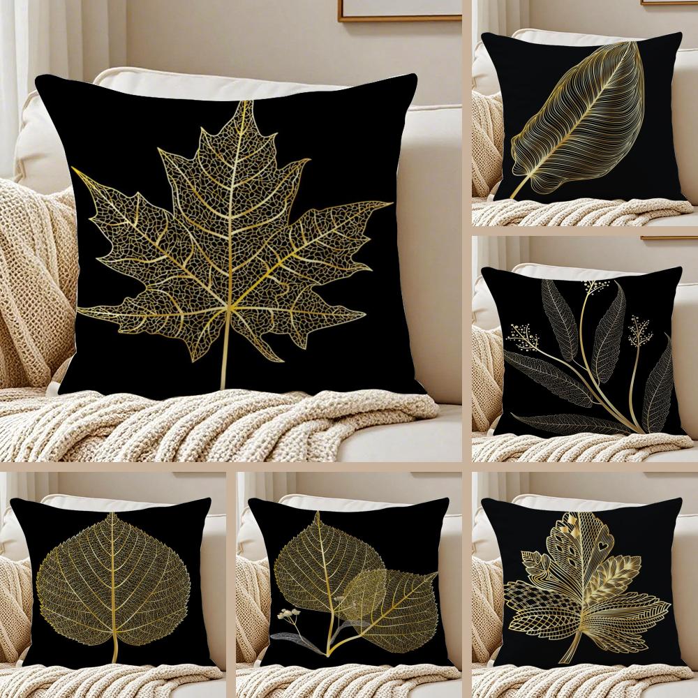 Golden Leaf Branch Pattern Cushion Cover Silky Short Plush DoubleSided Printed Pillow Case for Sofa All Seasons Home Decor