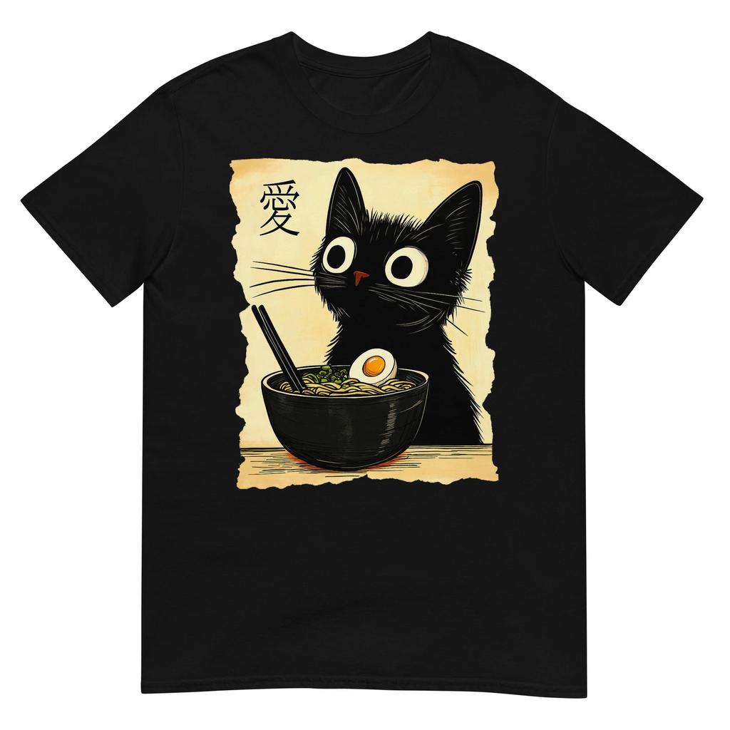 Funny Cat Ramen Graphic Tee Japanese Kawaii Anime Cat T-Shirt