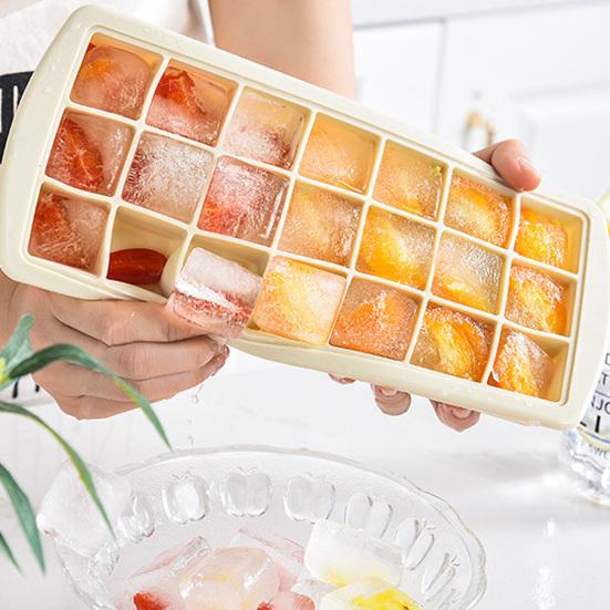 Ice Cube Tray with Lid 21-Cavity Large Square Silicone Ice Cube Mold Food-Grade Easy-Release Spill Proof Ice Cube Maker for Freezer