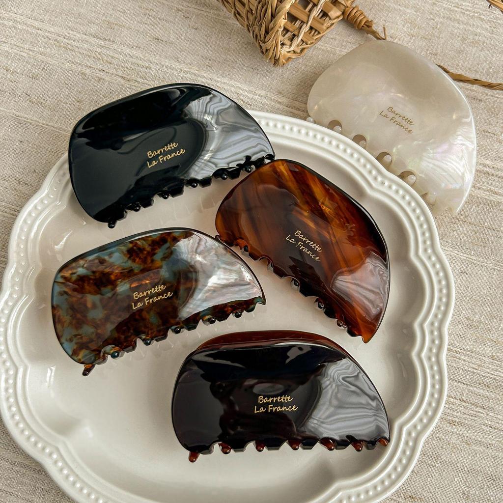 Elegant French Brown Acetate Claw Clip for Fine Hair: High-Quality Textured Shark Clip Hair Accessory