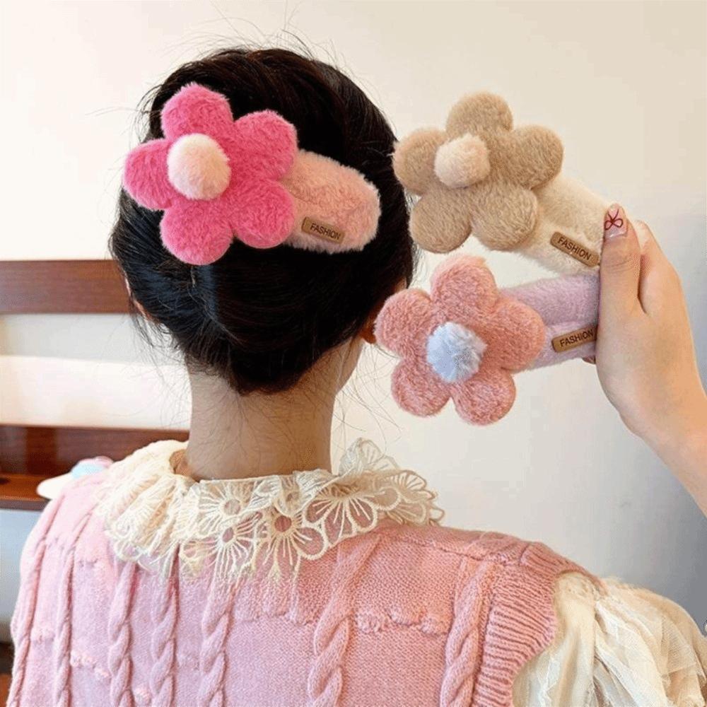 Cute Headwear Accessories Sweet Duckbill Clip Flyaway Hair Plush Flower Hair Clip Autumn Winter
