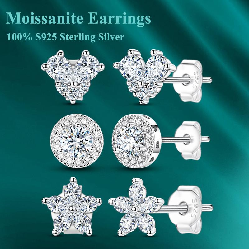 Moissanite Stud Earring Genuine Copper Timeless Shining Round Heart Flower Moissanite Ear For Women Wedding Engagement
