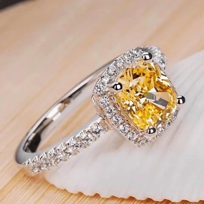 New Elegant Yellow Cubic Zirconia Women Rings Luxury Wedding Anniversary Party Lady's Accessories Bright Fashion Jewelry