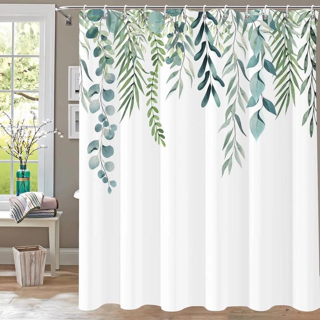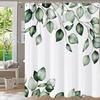 Bathroom Fabric Shower Curtain Waterproof Green Washable Watercolor Leaf Top Plant Bathroom Shower Curtain with Flowers