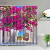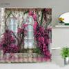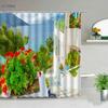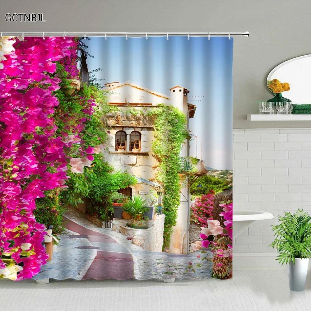 3D Europe Seaside Town Shower Curtain Flower Vine Courtyard Nature Scenery Polyester Fabric Home Decor Hook Bathroom Accessories