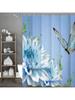 Blue Butterfly Floral Shower Curtain, Bathroom Decorative Shower Curtain, Waterproof Shower Curtain with Hooks