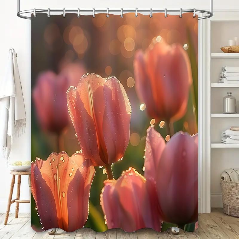 Elegant Tulip Shower Curtain with Dew Drops - Nature-Inspired Bathroom Decor for a Relaxing Ambiance Waterproof Durable