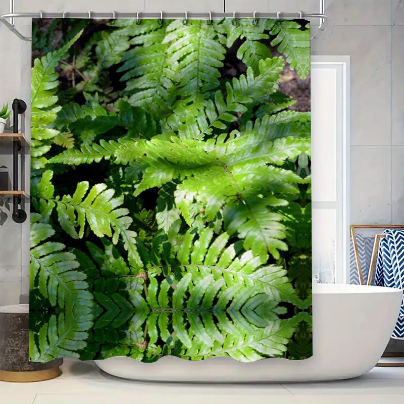 Green Leaf Shower Curtain Waterproof Bathroom Decor Customizable Size 3D Printing for Bathtub Plant Pattern Home Decoration