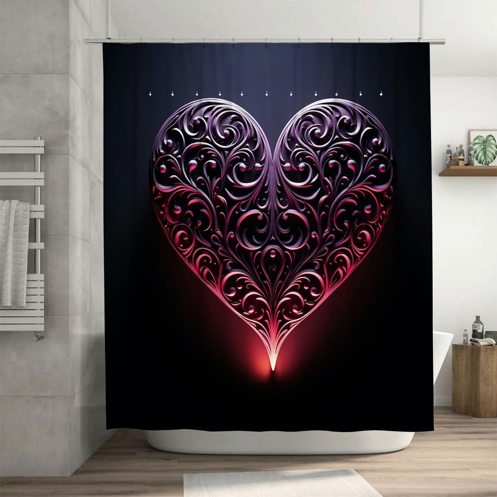 Elegant Gothic Heart Shower Curtain - Waterproof, Mildew-Resistant, Machine Washable for Stylish Bathroom Decor