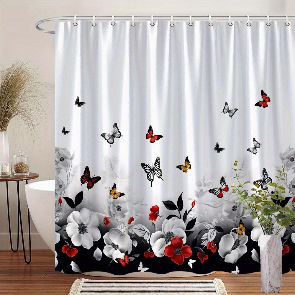 1 Exotic Butterfly Garden Shower Curtain, Polyester Fabric, with Hooks, Machine Washable, Suitable for Bathroom Decoration