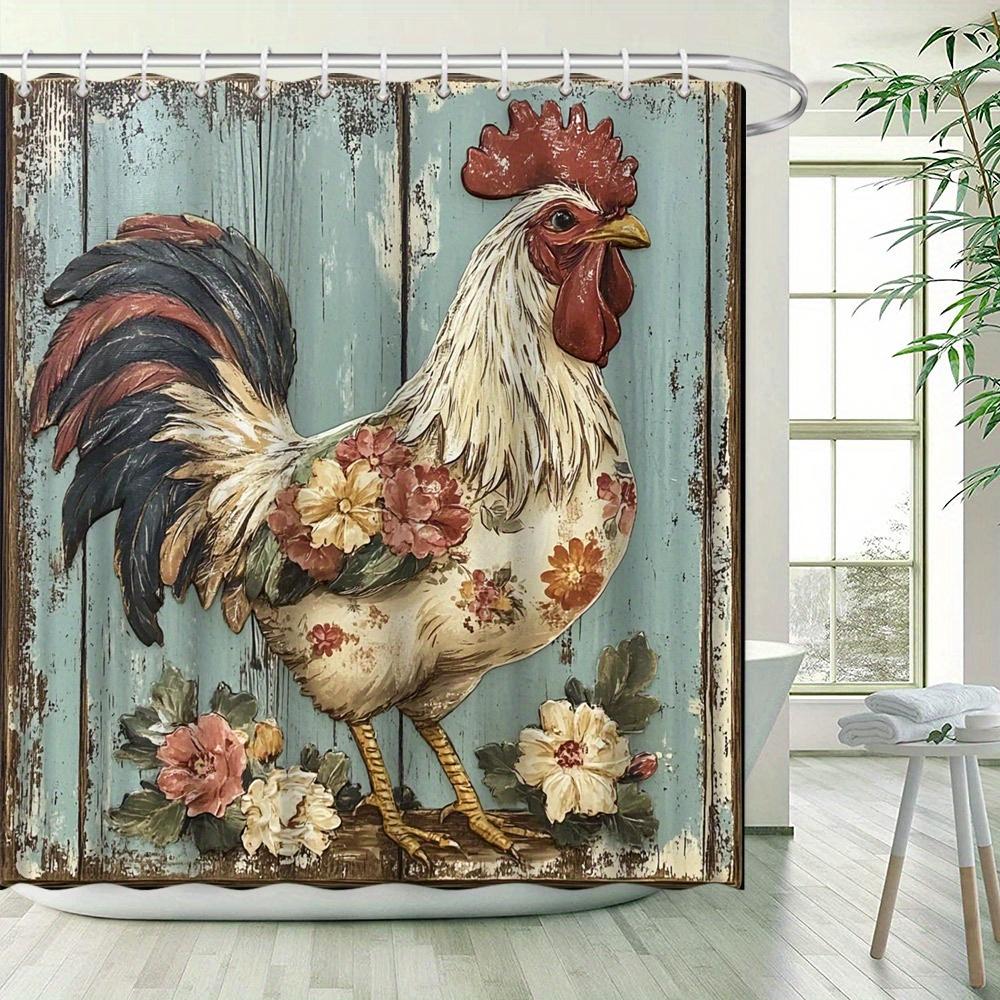 Simple Rooster Shower Curtain - Rural Charm with Flower Decoration Living Room Wall Hanging, Bedroom Decoration - FarmhouseStyle