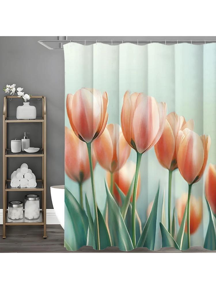 Mother's Day Tulip Shower Curtain, Bathroom Decorative Shower Curtain, Waterproof Shower Curtain with Hooks