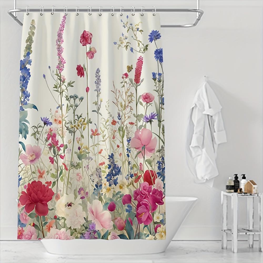 Polyester Floral Shower Curtain - Vibrant Digital Print, Machine Washable, Grommets, All-Season Decor,Privacy&Floral Bath Design
