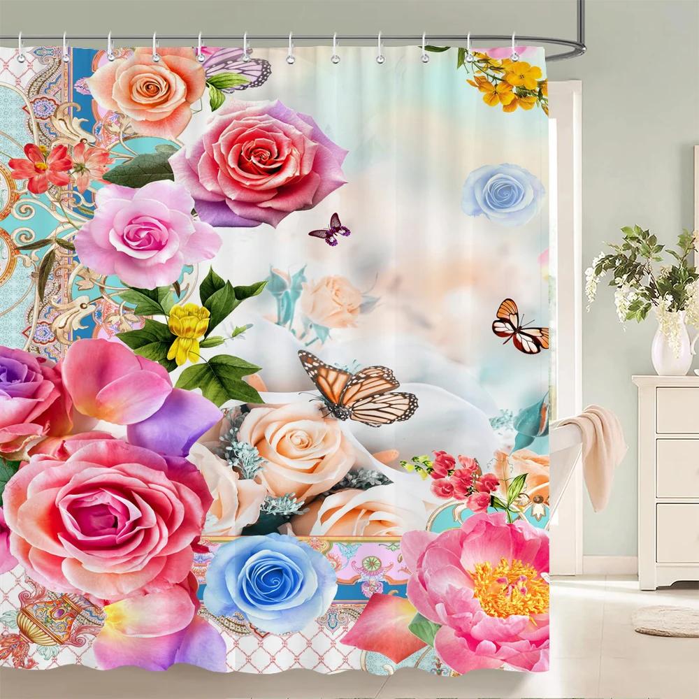 Flowers Pattern Shower Curtains Bath Curtain Waterproof Bathroom 3d Print Decor With Hooks Washable Fabric 180*180 Bath Screen