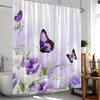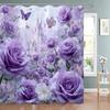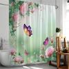 Butterfly Floral Shower Curtain Rose Flowers Plant Botanical Bathroom Decor Elegant Polyester Fabric Bath Curtain with Hook
