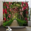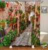Flowers Scenery Waterproof Shower Curtains Rural Street Flowers Bathroom Curtains Polyester Fabric Washable Decor Bath Curtains