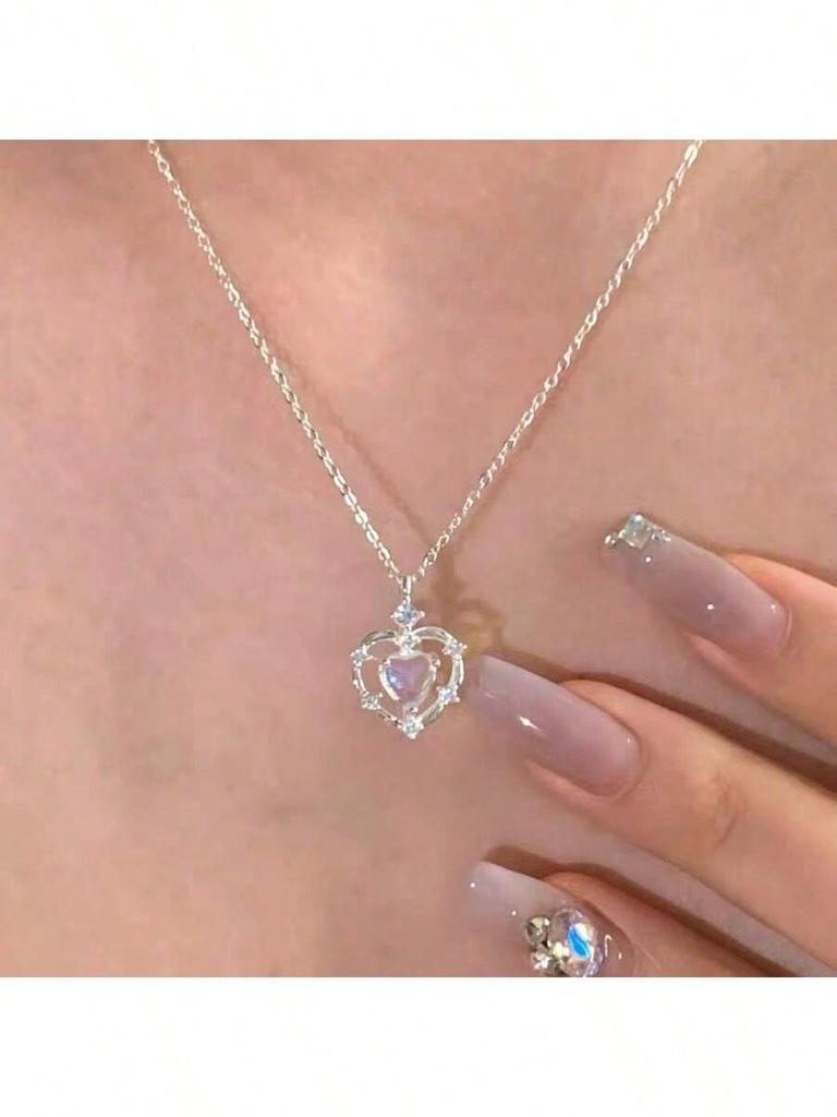 Women's Gradient Heart Necklace (1 Piece) - Simple and Stylish Jewelry, Trendy Pendant Chain Suitable for Everyday Wear, Parties