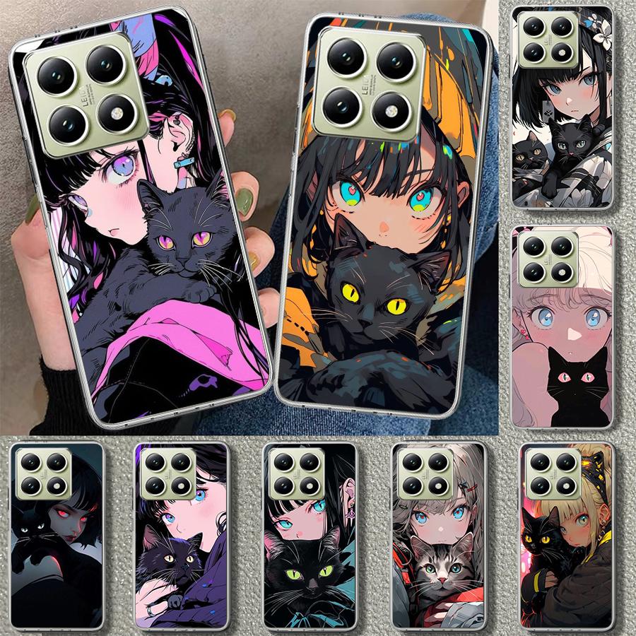Anime Girls Cute Black Cat Phone Case Cover for Xiaomi Redmi Note 15 14 13 12 11 Pro Plus 14S 12S 11S 11T 11E 10S 10 Customized
